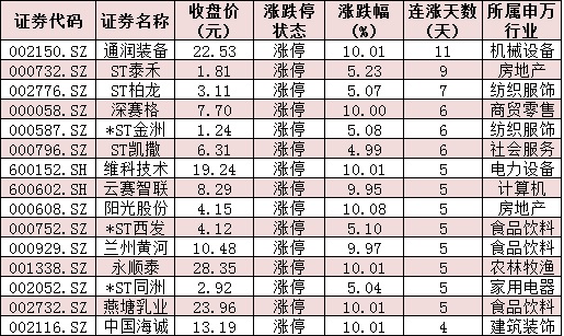 表:連續(xù)上漲4日且今日收盤漲停個股情況: