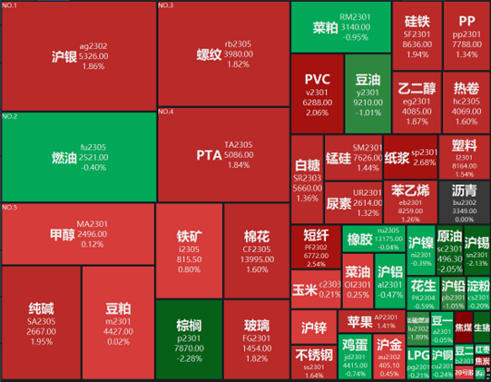 海外原油價格再度明顯下跌,WTI原油下跌10.9%,有色、黑色、農(nóng)產(chǎn)品各品種價格均漲跌互現(xiàn)。對比來看,LME鋅漲幅領先(3.9%)、SHFE螺紋鋼(3.6%)、DCE鐵礦石(3.4%)、CBOT大豆(2.9%)、COMEX白銀(1.4%)緊隨其后。從下跌幅度來看,DCE焦煤跌幅領先,達到15.1%,其后是ICE布油(-10.1%)、CBOT小麥(-3.6%)、LME鋁(-3.4%);COMEX黃金價格則基本持平。