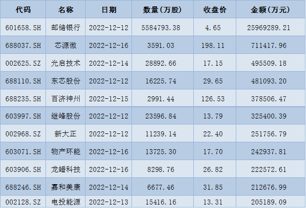 表:下周解禁市值前十位(本周收盤價計算)