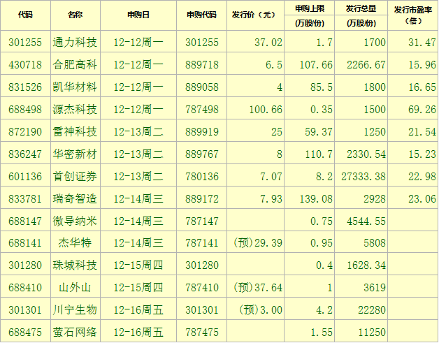 新股方面,根據(jù)發(fā)行安排,A股市場下周將有14只新股申購。
