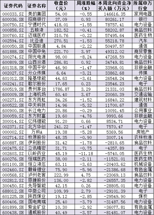 資金方面,周五,北向資金凈買入金額達43.62億元,連續(xù)3個交易日實現(xiàn)凈買入。本周北向資金累計凈買入金額達56.65億元。從前十大成交活躍股來看,本周,美的集團、招商銀行、寧德時代等3只個股,北向資金凈買入金額均超7億元。另外,通威股份、國電南瑞、紫金礦業(yè)等個股遭北向資金凈賣出金額均超3億元。