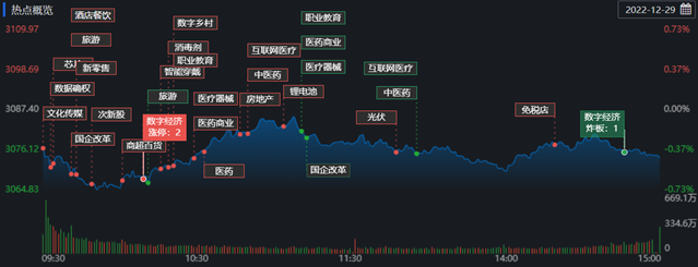 12月29日,A股三大指數(shù)低開(kāi)震蕩分化,滬指圍繞60日均線運(yùn)行。截至收盤,上證指數(shù)跌0.44%報(bào)3073.70點(diǎn);深證成指跌0.13%報(bào)10996.41點(diǎn),創(chuàng)業(yè)板指漲0.48%報(bào)2349.38點(diǎn),A股合計(jì)成交額6146.20億元,較前一交易日縮減5.54%,北向資金凈賣出11.10億元??傮w上看,A股個(gè)股漲少跌多,有1576只上漲,3331只下跌。