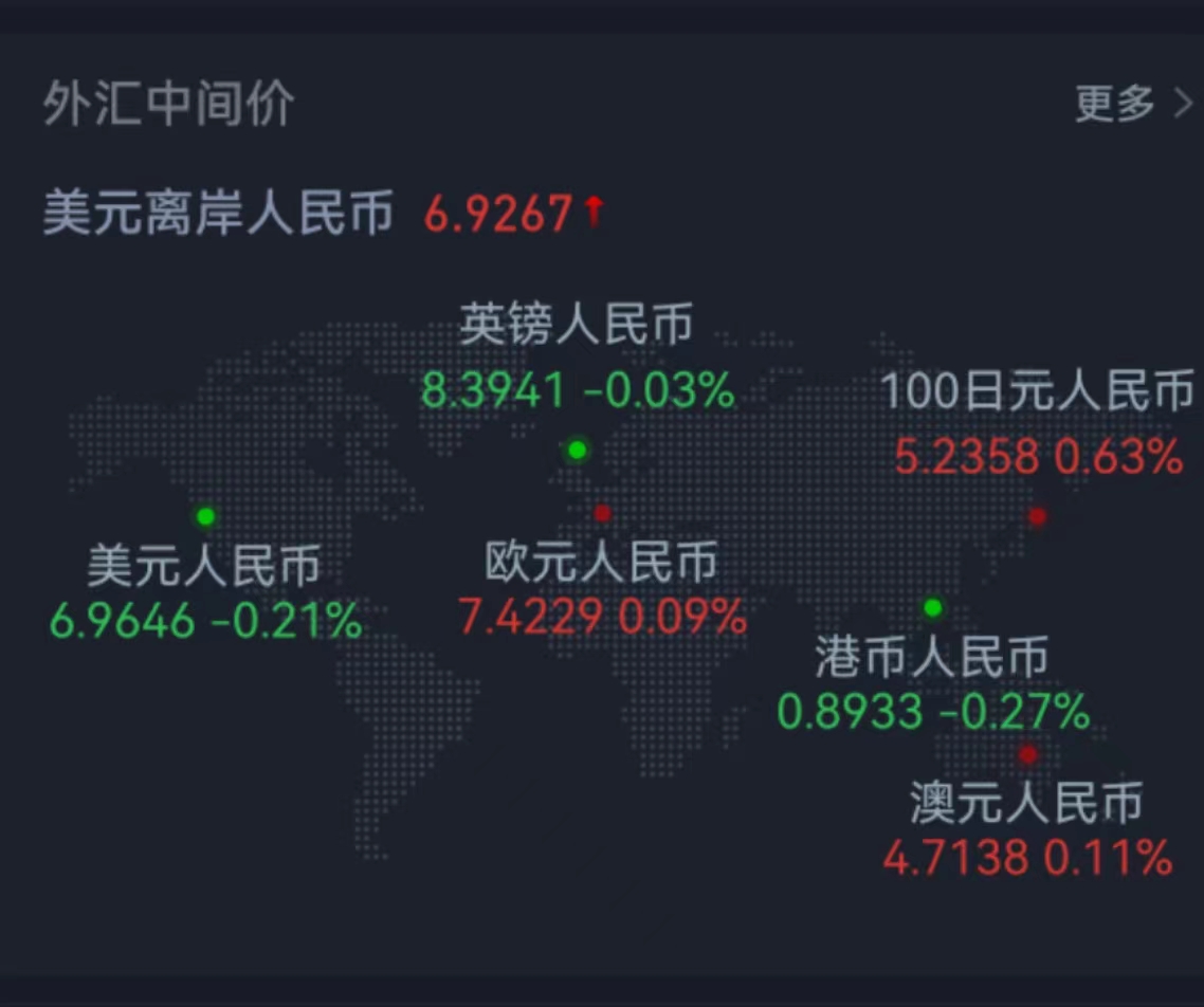 上周五在岸人民幣兌美元夜盤23:30收報6.9000。人民幣兌美元中間價報6.9646,調(diào)升147個基點,上周累計調(diào)升164個基點,全年累計調(diào)貶5889個基點。交易員稱,市場對疫情還是有擔憂的,短期情緒受抑制。