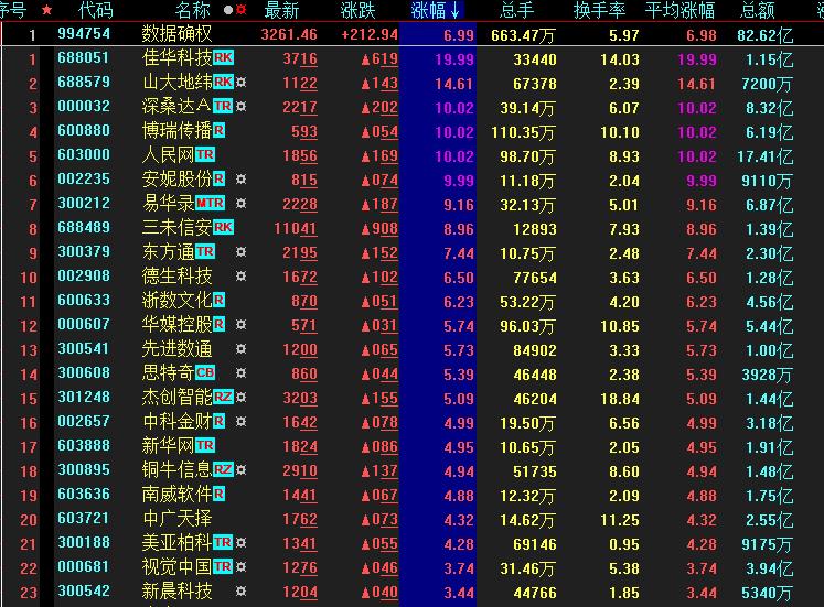 具體看,截至1月3日上午收盤,數(shù)據(jù)確權(quán)板塊表現(xiàn)搶眼,漲幅達(dá)6.99%。其中,佳華科技、深桑達(dá)A、博瑞傳播、人民網(wǎng)、安妮股份等多只概念股集體漲停。