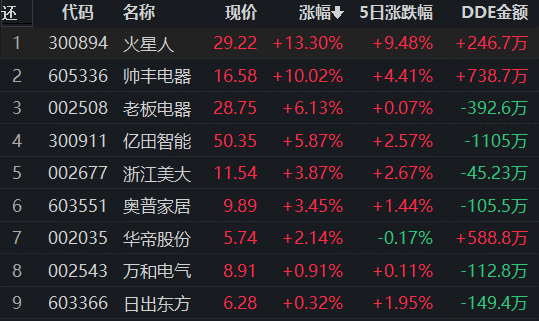 早盤滬指繼續(xù)走紅 廚衛(wèi)電器漲逾5% 機(jī)構(gòu):后續(xù)走勢仍可積極期待