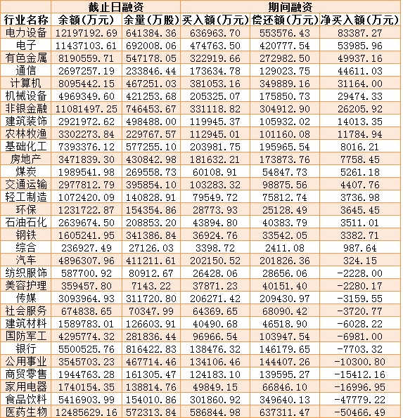 表:1月5日申萬(wàn)一級(jí)行業(yè)兩融交易情況: