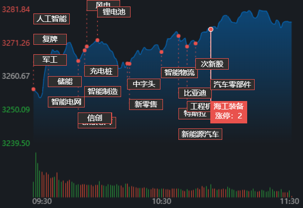 2月13日,A股早盤三大指數(shù)震蕩上揚,量能有所放大,深市略強。截至上午11:30,上證指數(shù)漲0.53%,報3278.07點;深證成指和創(chuàng)業(yè)板指漲幅分別為0.70%和0.57%;滬深兩市成交額合計6061.2億元,較前一交易日同期增長4.25%??傮w來看,A股市場個股漲多跌少,漲跌停方面,有34只個股漲停,跌停股2只。