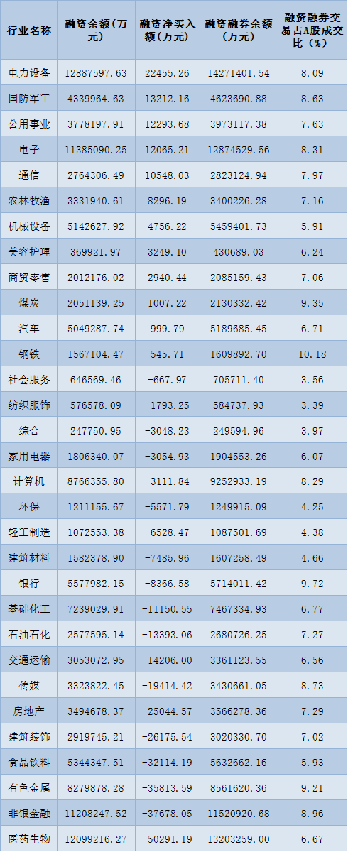 表:2月10日申萬一級行業(yè)兩融交易情況: