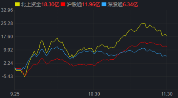 從資金面來看,2月13日上午,北上資金凈買入金額達18.30億元,其中,滬股通凈買入11.96億元,深股通凈買入6.34億元。