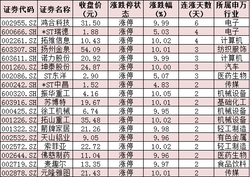 表:連續(xù)上漲2日且今日收盤漲停個股情況: