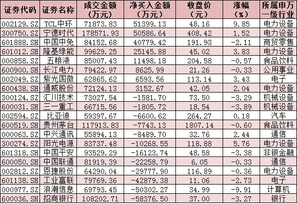 表:今日滬、深股通前十大成交活躍股交易情況:
