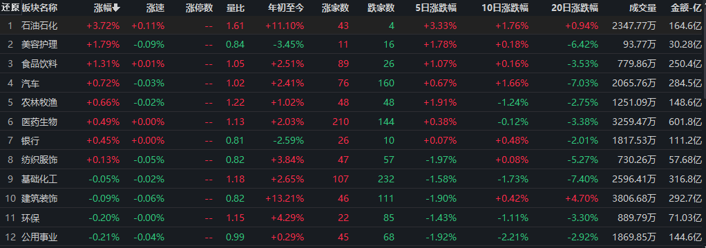 表:今日石油石化行業(yè)漲幅前十個股一覽