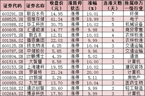 表:連續(xù)上漲3日且今日收盤漲停個股情況: