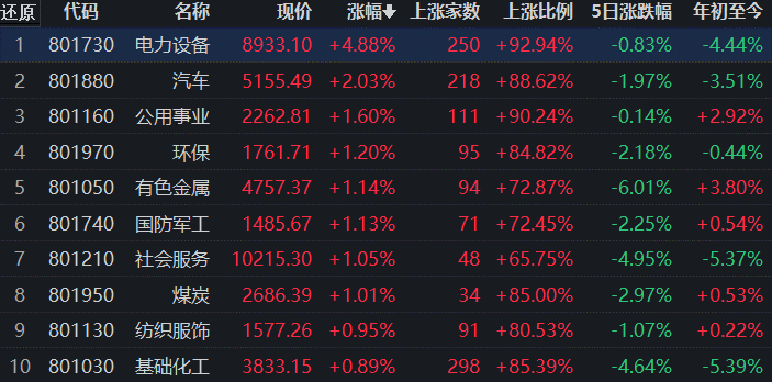 電力設(shè)備行業(yè)漲4.88%