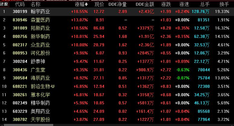 具體看,截至5月23日上午收盤,新冠特效藥板塊漲幅居首達(dá)5.51%,資金凈流入達(dá)54.9億元。其中,翰宇藥業(yè)、森萱醫(yī)藥、拓新藥業(yè)、新華制藥、眾生藥業(yè)等多只醫(yī)藥股漲幅均超10%。
