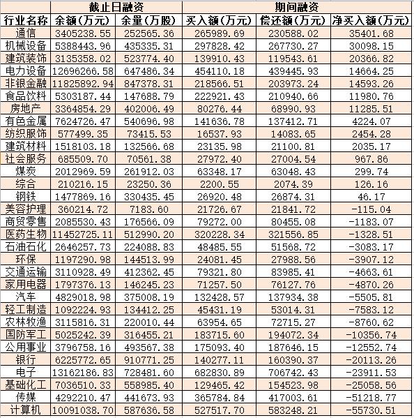 表:5月22日申萬一級(jí)行業(yè)兩融交易情況: