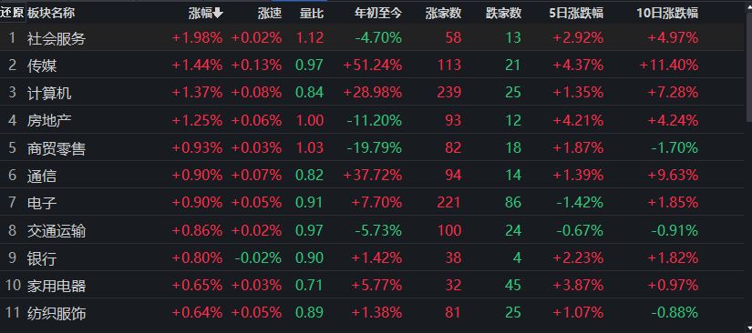 餐飲旅游板塊表現(xiàn)活躍