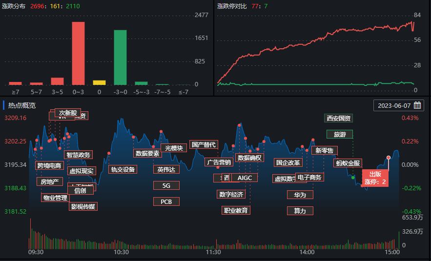 6月7日,兩市再現(xiàn)震蕩分化走勢(shì),滬指盤中窄幅震蕩,尾盤拉升后小幅收漲,創(chuàng)業(yè)板指下跌超1.5%,續(xù)創(chuàng)年內(nèi)新低,兩市成交量再度萎縮,北上資金凈買入超25億元。有機(jī)構(gòu)人士表示,靜候新的做多催化劑出現(xiàn)。