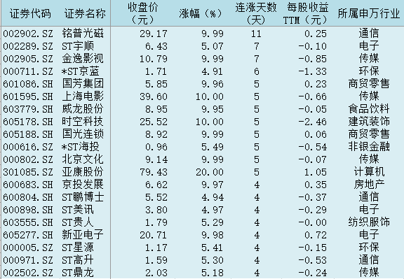 表:連續(xù)上漲4日且今日收盤漲停股一覽