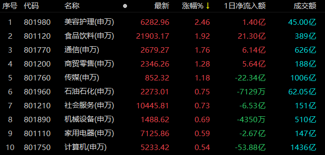 美容護理行業(yè)漲2.46%居首