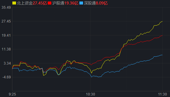 從資金面來看,7月11日上午,北上資金凈買入金額達27.45億元,其中,滬股通凈買入19.36億元,深股通凈買入8.09億元。