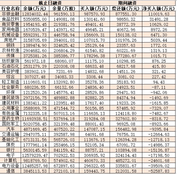 表:8月10日申萬一級行業(yè)兩融交易情況: