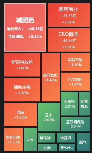 具體看,截至8月11日上午收盤,醫(yī)藥股紛紛反彈,減肥藥、醫(yī)藥商業(yè)、CRO概念等板塊漲幅居首,分別為3.44%、2.87%、2.01%,三個板塊資金凈流入分別達40.19億元、31.33億元和46.44億元。其中,新天地20CM漲停,圣諾生物、浙江震元等醫(yī)藥股漲幅均超10%。