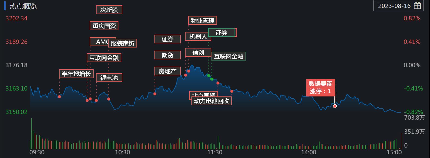 縮量調(diào)整!8月16日,A股三大指數(shù)繼續(xù)震蕩回落,成交額維持在7000億元左右,房地產(chǎn)行業(yè)逆市上漲,6只地產(chǎn)股集體漲停。業(yè)內(nèi)人士認(rèn)為,短線A股正處于磨底階段。