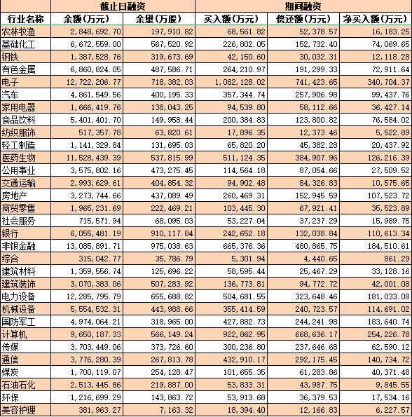 表:9月11日申萬一級行業(yè)兩融交易情況