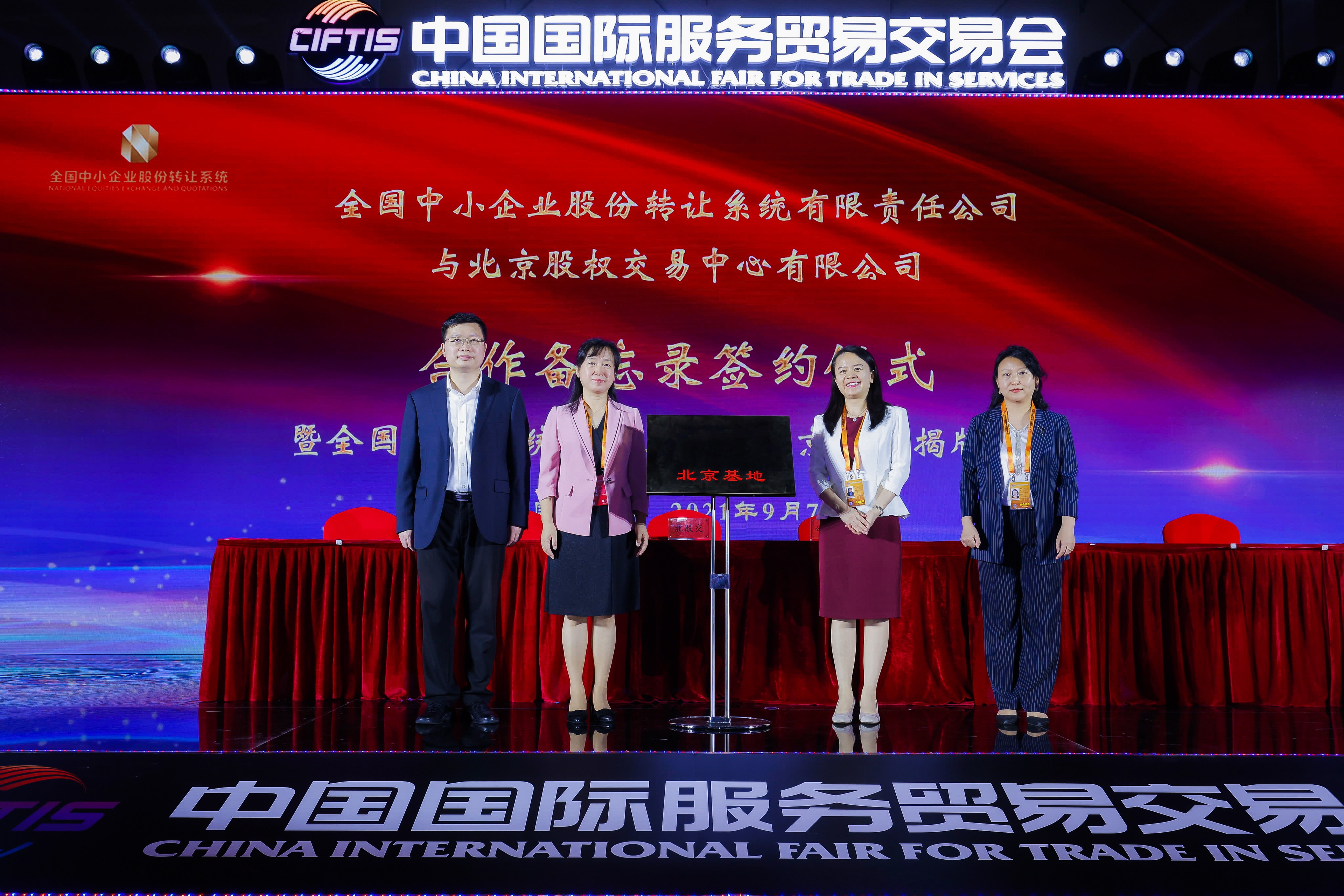 9月7日,在中國國際服務(wù)貿(mào)易交易成果發(fā)布會上,全國中小企業(yè)股份轉(zhuǎn)讓系統(tǒng)有限責(zé)任公司(以下簡稱“全國股轉(zhuǎn)公司”)與北京股權(quán)交易中心有限公司簽署合作備忘錄,并舉辦全國股轉(zhuǎn)系統(tǒng)(新三板)北京基地揭牌儀式。