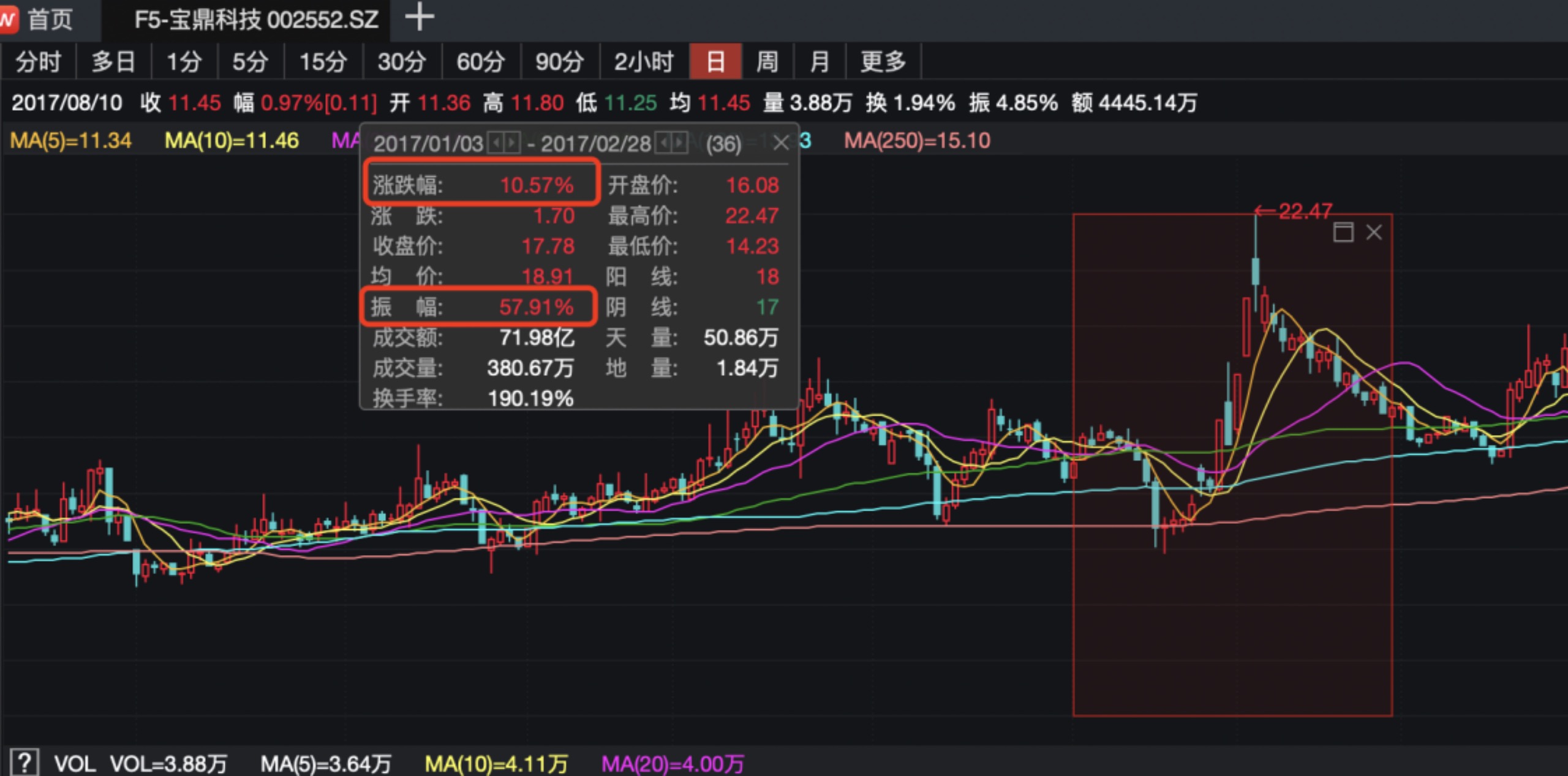 圖為2017年1月份至2月份,吳承澤團伙連續(xù)交易“寶鼎科技”時該股走勢