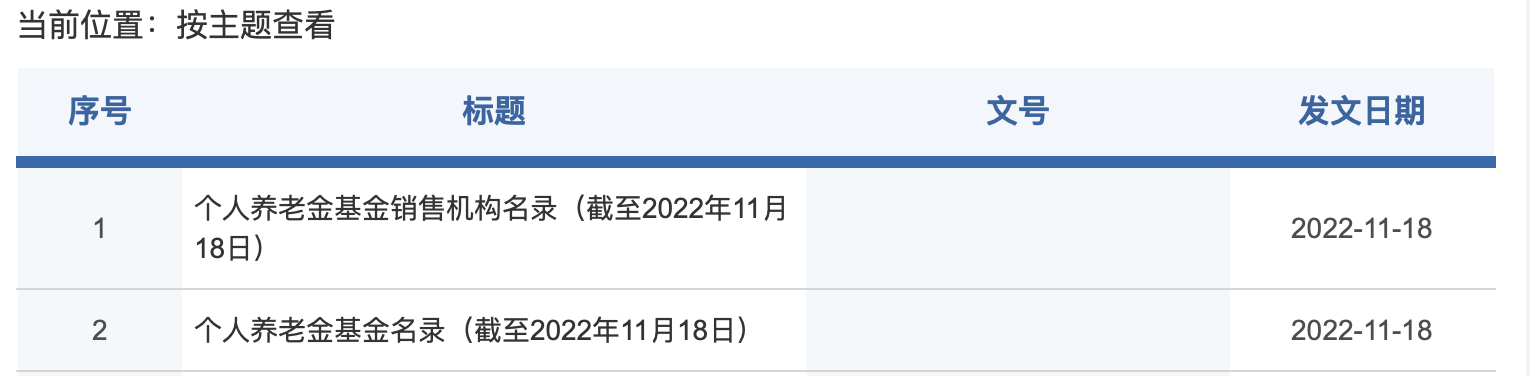 11月18日,證監(jiān)會(huì)發(fā)布個(gè)人養(yǎng)老金基金名錄和個(gè)人養(yǎng)老金基金銷售機(jī)構(gòu)名錄。個(gè)人養(yǎng)老金基金包含129只養(yǎng)老目標(biāo)基金,個(gè)人養(yǎng)老金基金銷售機(jī)構(gòu)共37家。