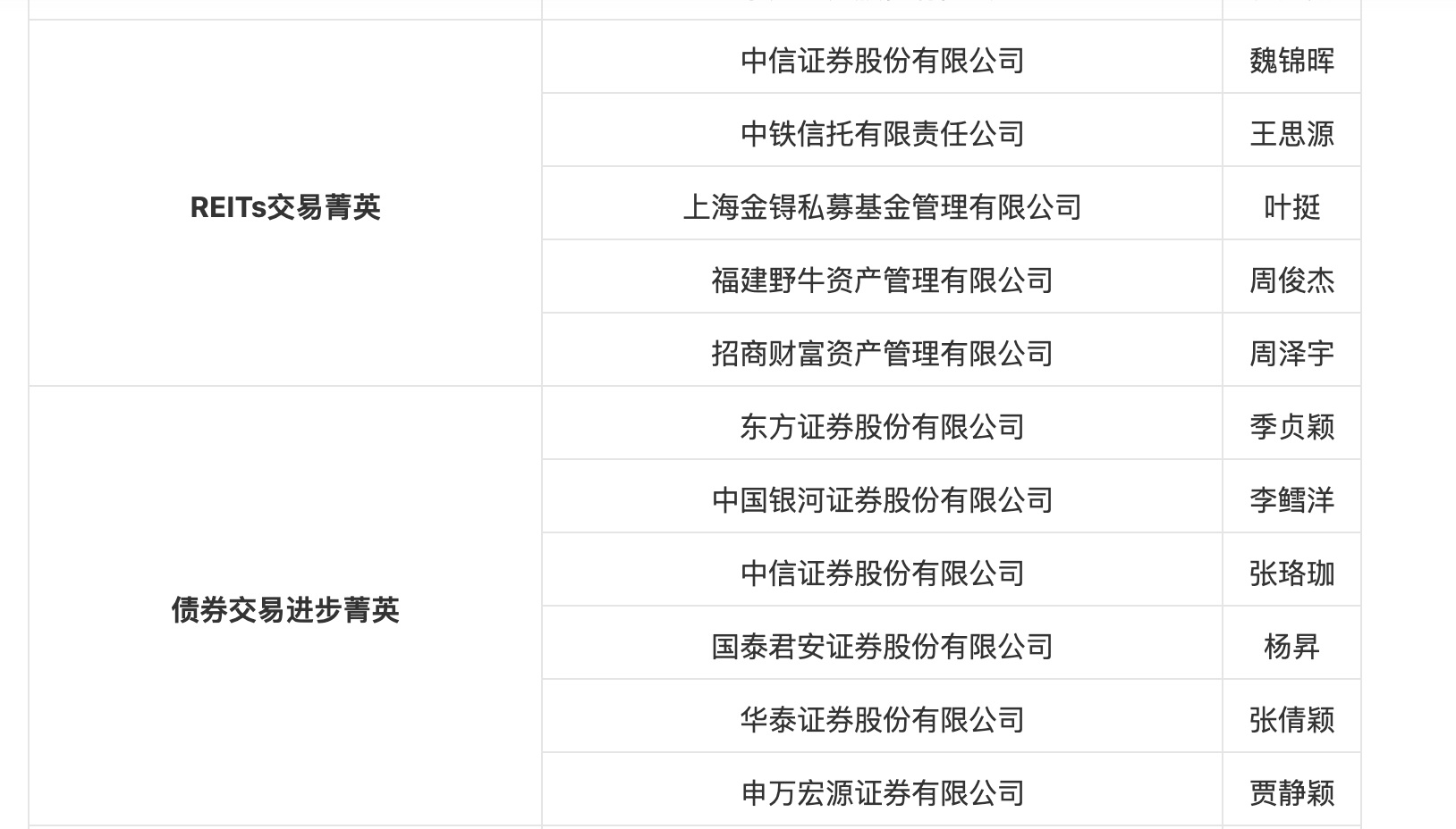 為鼓勵(lì)市場(chǎng)機(jī)構(gòu)積極參與債券投資交易、做市業(yè)務(wù)及創(chuàng)新業(yè)務(wù),推動(dòng)交易所債券買方市場(chǎng)建設(shè),2023年第三季度,上交所持續(xù)開展債券交易及投資菁英排名活動(dòng),共評(píng)選出16類獎(jiǎng)項(xiàng)。