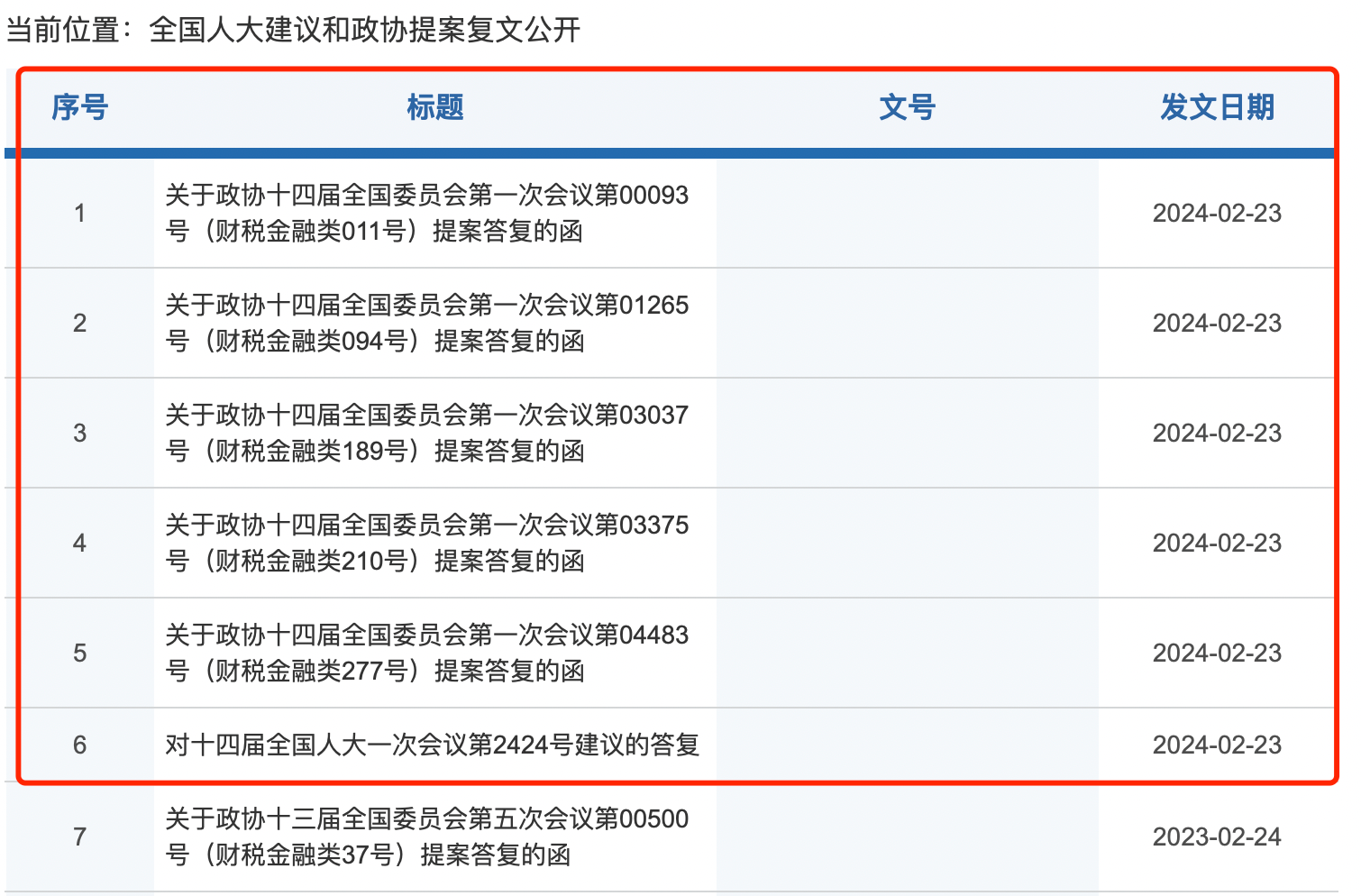 同日,證監(jiān)會網(wǎng)站公布了部分對十四屆全國人大一次會議建議和對政協(xié)十四屆全國委員會第一次會議提案的答復,共6份。