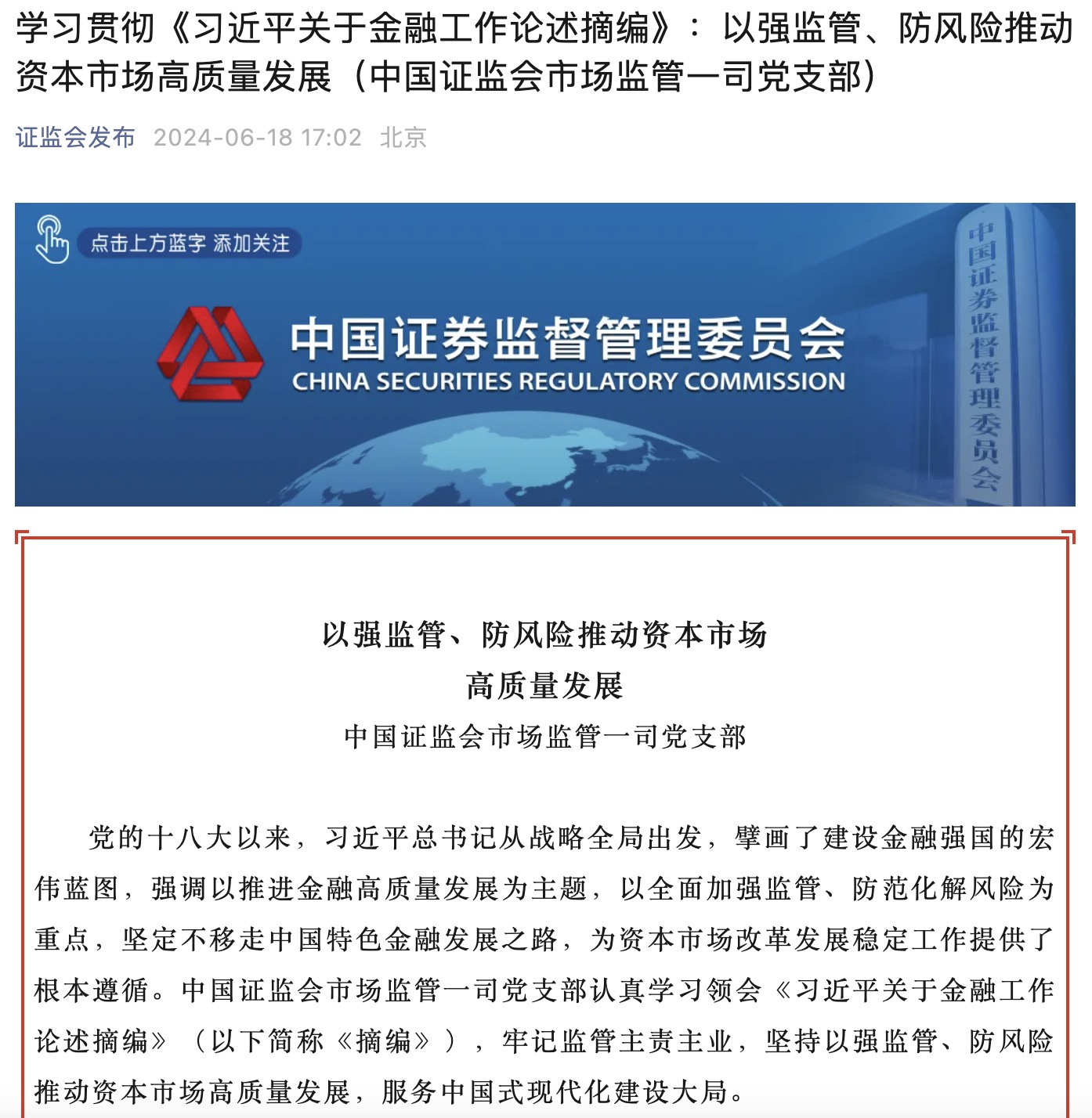 6月18日,中國證監(jiān)會微信公眾號發(fā)布文章,透露資本市場下一步改革舉措!