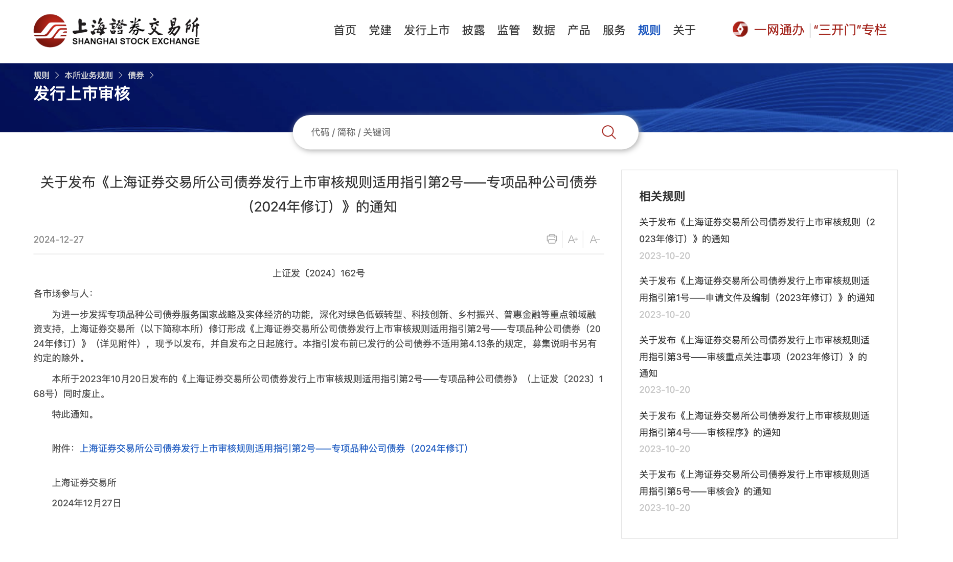 12月27日,在中國證監(jiān)會的指導(dǎo)下,上交所修訂發(fā)布《上海證券交易所公司債券發(fā)行上市審核規(guī)則適用指引第2號——專項品種公司債券(2024年修訂)》(以下簡稱《專項品種公司債券指引》)。