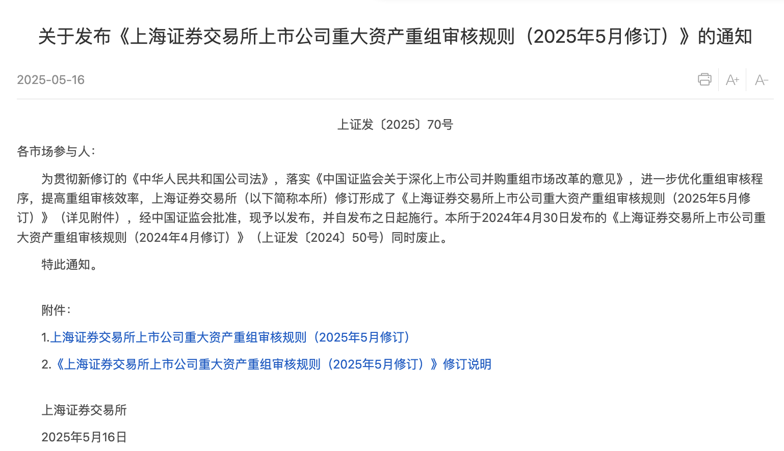 5月16日,中國證監(jiān)會修改《上市公司重大資產(chǎn)重組管理辦法》(以下簡稱《重組辦法》)。同日,滬深北交易所發(fā)布了新修訂的《上海證券交易所上市公司重大資產(chǎn)重組審核規(guī)則》《深圳證券交易所上市公司重大資產(chǎn)重組審核規(guī)則》《北京證券交易所上市公司重大資產(chǎn)重組審核規(guī)則》(以下簡稱《重組審核規(guī)則》)和配套業(yè)務(wù)指南。