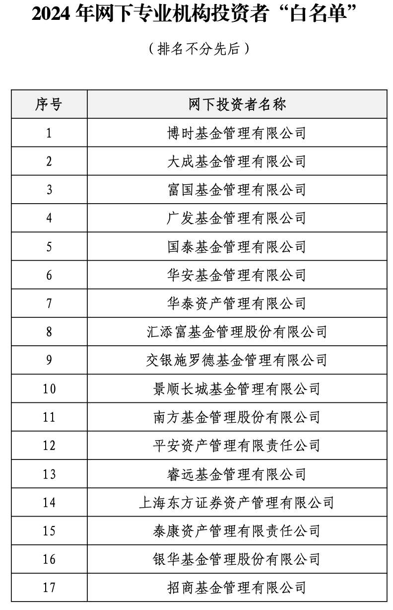 中證協(xié)發(fā)布2024年網(wǎng)下專業(yè)機(jī)構(gòu)投資者“白名單” 首批21家機(jī)構(gòu)被納入