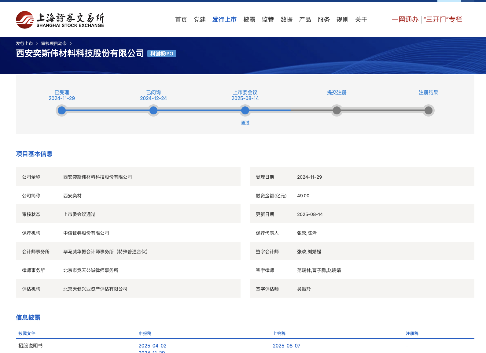 本報訊 (記者毛藝融)8月14日,記者從上交所官網(wǎng)獲悉,西安奕斯偉材料科技股份有限公司(以下簡稱“西安奕材”)科創(chuàng)板首發(fā)申請獲得上交所上市委審議通過。