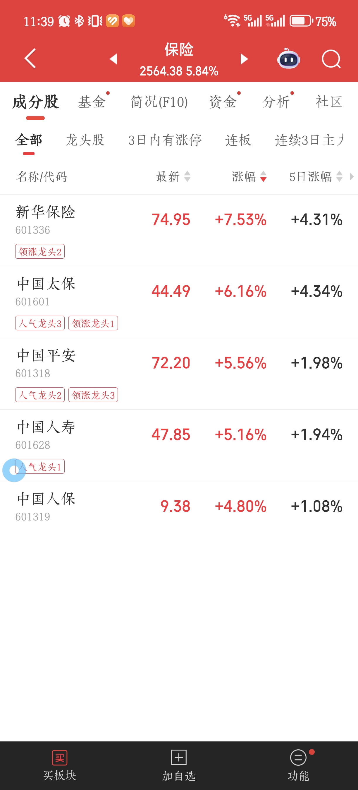 同花順數(shù)據(jù)顯示,截至午間收盤,保險板塊上漲5.84%,其中新華保險(601336)以7.53%漲幅領(lǐng)漲,創(chuàng)歷史新高。中國平安(601318)、中國太保(601601)、中國人壽(601628)、中國人保(601319)均漲超4%,延續(xù)了2025年的強勢表現(xiàn)。