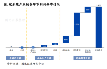以一只售價(jià)3500元的玻尿酸為例,根據(jù)國元證券的數(shù)據(jù),原料成本其實(shí)只有8元左右,而上游原料+成品,含銷售成本及利潤共約400元。消費(fèi)者交給醫(yī)美機(jī)構(gòu)的3500元里,除去400元成本,有2000元都是機(jī)構(gòu)為了獲客而付出的投放、營銷成本。