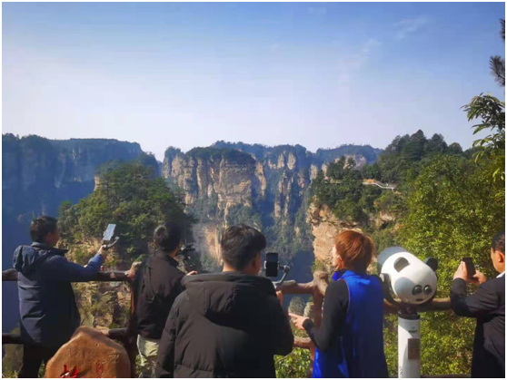在暖融融的春光下游客們在張家界網(wǎng)紅地打卡留念(攝影:金鑫)