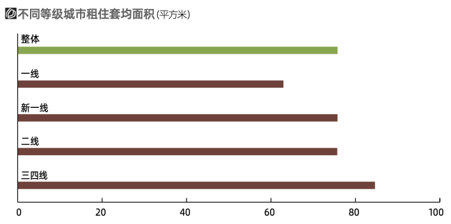 一線城市客群租賃的套均面積約為62.9平方米,新一線城市客群租賃的套均面積約為75.8平方米,二線城市客群租賃的套均面積約為75.7平方米,三四線城市套均面積約為84.6平方米。