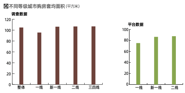 不過,無論是從調(diào)研數(shù)據(jù)還是從平臺成交數(shù)據(jù)看,居住面積總體呈現(xiàn)“城市越大,房子越小”的特征,大城市的住房需求問題較為突出。根據(jù)貝殼2021年1月-3月重點(diǎn)40城成交數(shù)據(jù)顯示,一線城市套均成交面積約為75.3平方米,人均面積約為25.1平方米(按照戶均三口計(jì)算);新一線套均成交面積約為86.6平方米,人均面積約為28.9平方米;二線城市套均成交面積約為87.8平方米,人均約為29.3平方米。