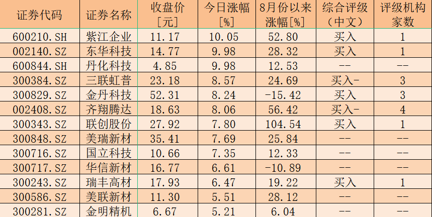 受此消息影響,今日(9月15日),可降解塑料板塊指數上漲2.50%,跑贏上證指數(漲幅-0.17%)。具體到個股方面,共有包括紫江企業(yè)、東華科技和丹化科技在內的3只個股漲停;包括三聯(lián)虹普(8.57%)、金丹科技(8.24%)、齊翔騰達(8.06%)、聯(lián)創(chuàng)股份(7.80%)、美瑞新材(7.69%)等在內的10只個股漲幅超過5%。