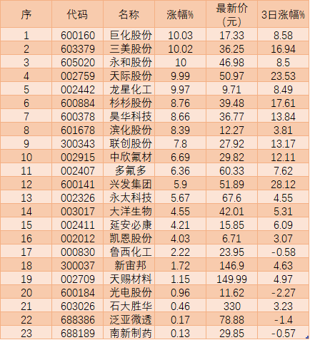 新能源助推氟化工漲4.13%
