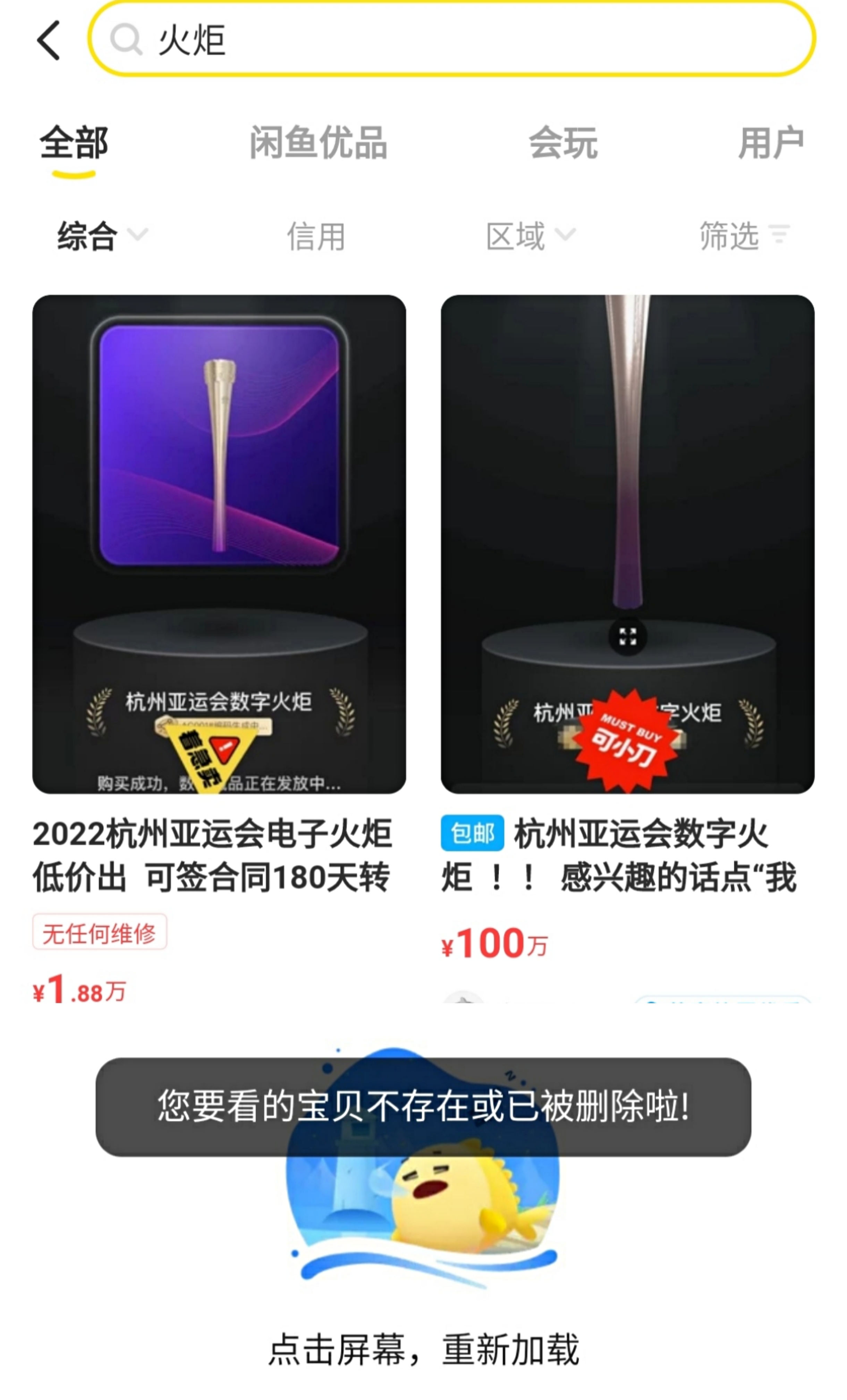 不過記者也觀察到,二手電商平臺對此類信息管控很嚴格,某條“數(shù)字火炬”NFT商品自發(fā)布后,大概過半小時就下架了。