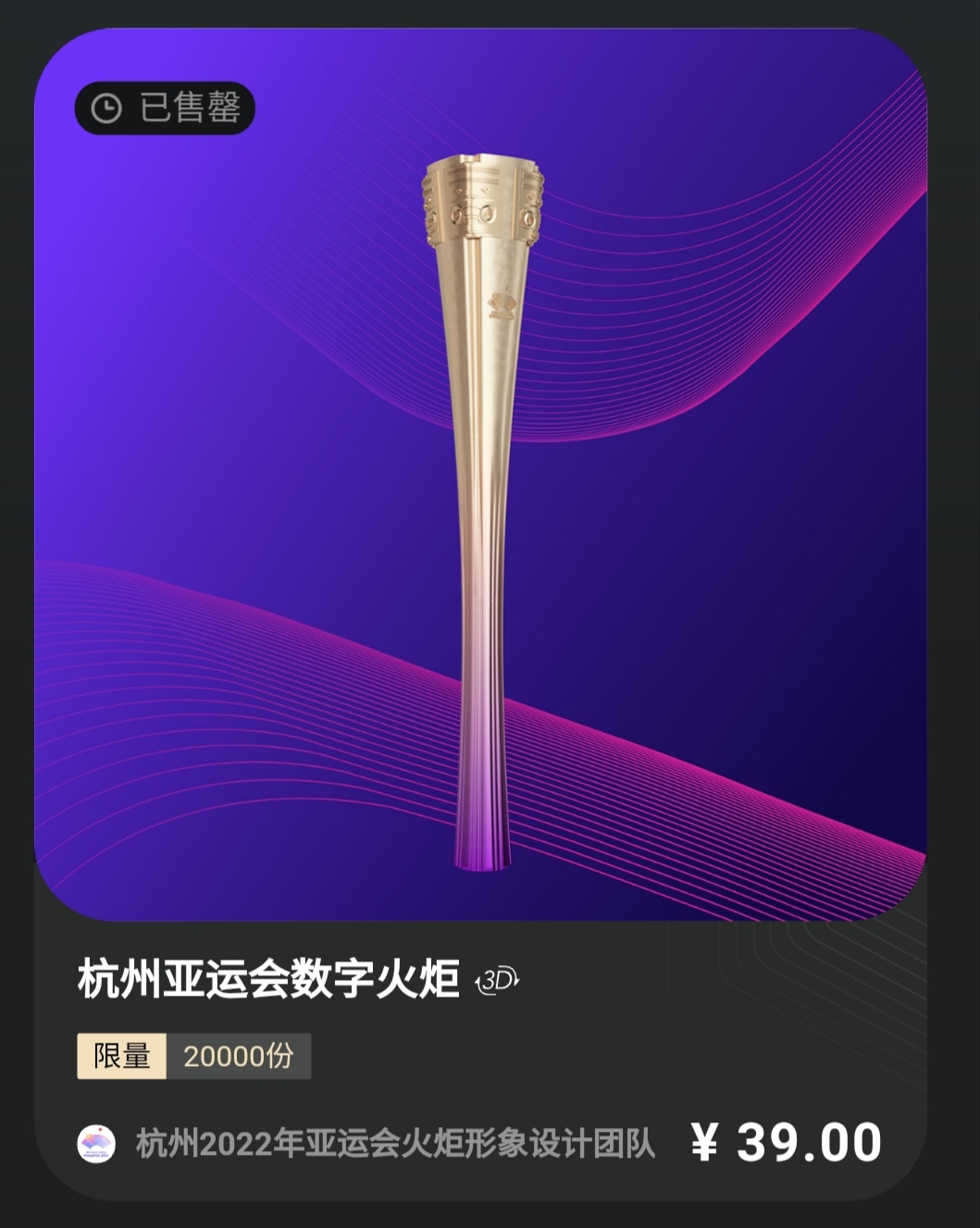 亞運會“數(shù)字火炬”數(shù)字收藏品