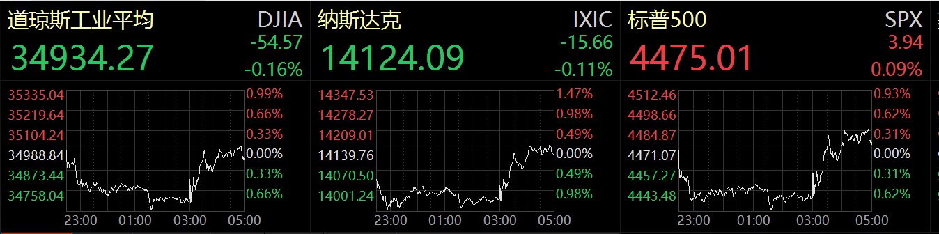 分析人士普遍認(rèn)為,美聯(lián)儲(chǔ)最新會(huì)議紀(jì)要的立場(chǎng)并不如預(yù)期強(qiáng)硬。受此消息影響,當(dāng)?shù)貢r(shí)間2月16日,美股三大指數(shù)盤(pán)中集體拉升,截至收盤(pán),美股三大指數(shù)漲跌不一,道瓊斯指數(shù)跌0.16%,報(bào)34934.27點(diǎn);標(biāo)普500指漲0.09%,報(bào)4475.01點(diǎn);納斯達(dá)克指數(shù)跌0.11%,報(bào)14124.09點(diǎn)。