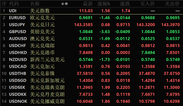 東吳期貨表示,在美聯(lián)儲加息利多以及預(yù)計(jì)年底利率升至4.4高位影響下,本周美元指數(shù)強(qiáng)勁上漲,已創(chuàng)20年來新高,美元指數(shù)突破110來到113高位,我們預(yù)計(jì)美元指數(shù)短期、中期延續(xù)加速上漲態(tài)勢,長期趨勢明顯上漲。